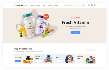 Starting your online medical store with Medizin to create impressive pages using our premade layouts